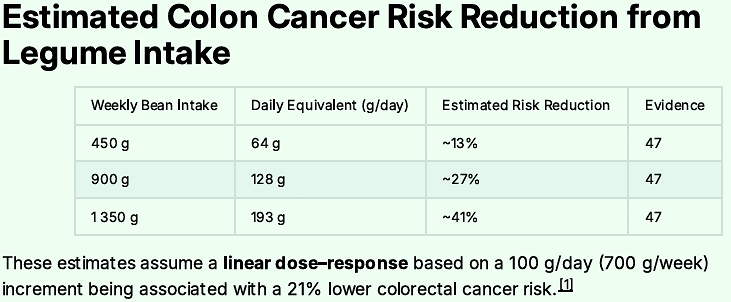 I mentioned I would be adding what I do. And one of the biggest changes I made that lowered my cancer risk was taking up bean consumption.