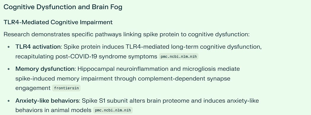 And finally, for all my readers who notice brain fog and anxiety, the Spike Protein can cause this through its activation of Toll Like Receptors or TLR2. Spike activates a key pathway - NF-kB - which in turn activates TLR2 which then does the damage to our body and brain.