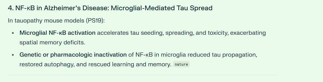 Active NF-κB causes widespread damage. In cancer, it helps tumors grow blood vessels, spread to other organs, and resist treatment. Research showed spike protein makes lung cancer cells more aggressive through NF-κB activation. In the brain, NF-κB drives the spread of toxic tau protein that causes memory loss in Alzheimer's disease.