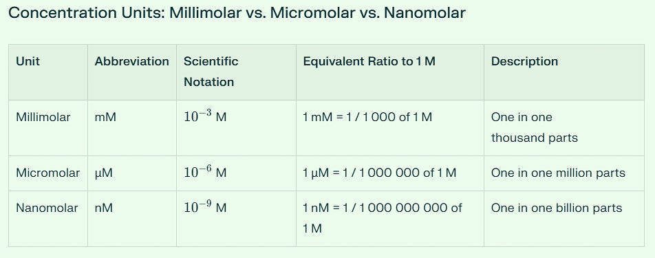 A Brief Primer on Millimolar, Micromolar and Nanomolar