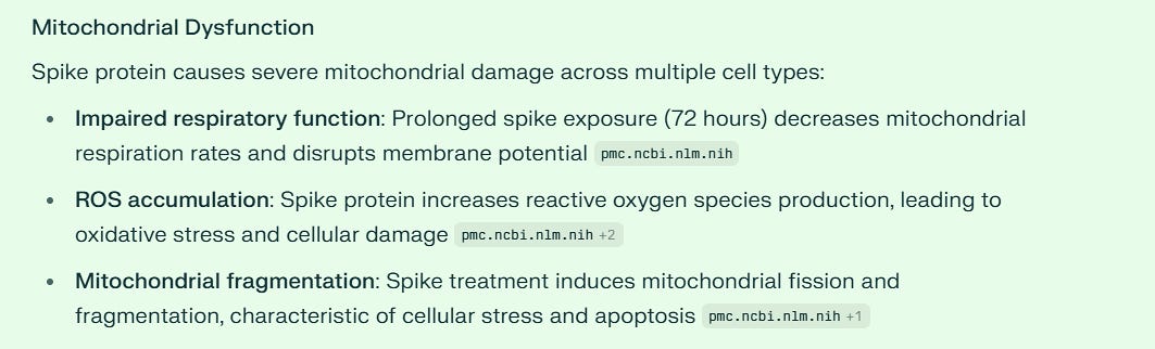 Spike damages the mitochondria, and all my readers know by now that cancer is caused by diseased mitochondria. However, diseases of the brain also can result.