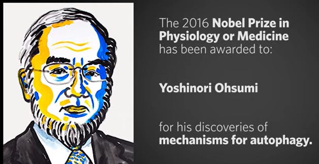 Yoshinori Ohsumi. Nobel Prize 2016 for discovery of mechanisms for autophagy. Cell. 2016. Autophagy as cellular mechanism for cancer prevention via fasting and metabolic stress.